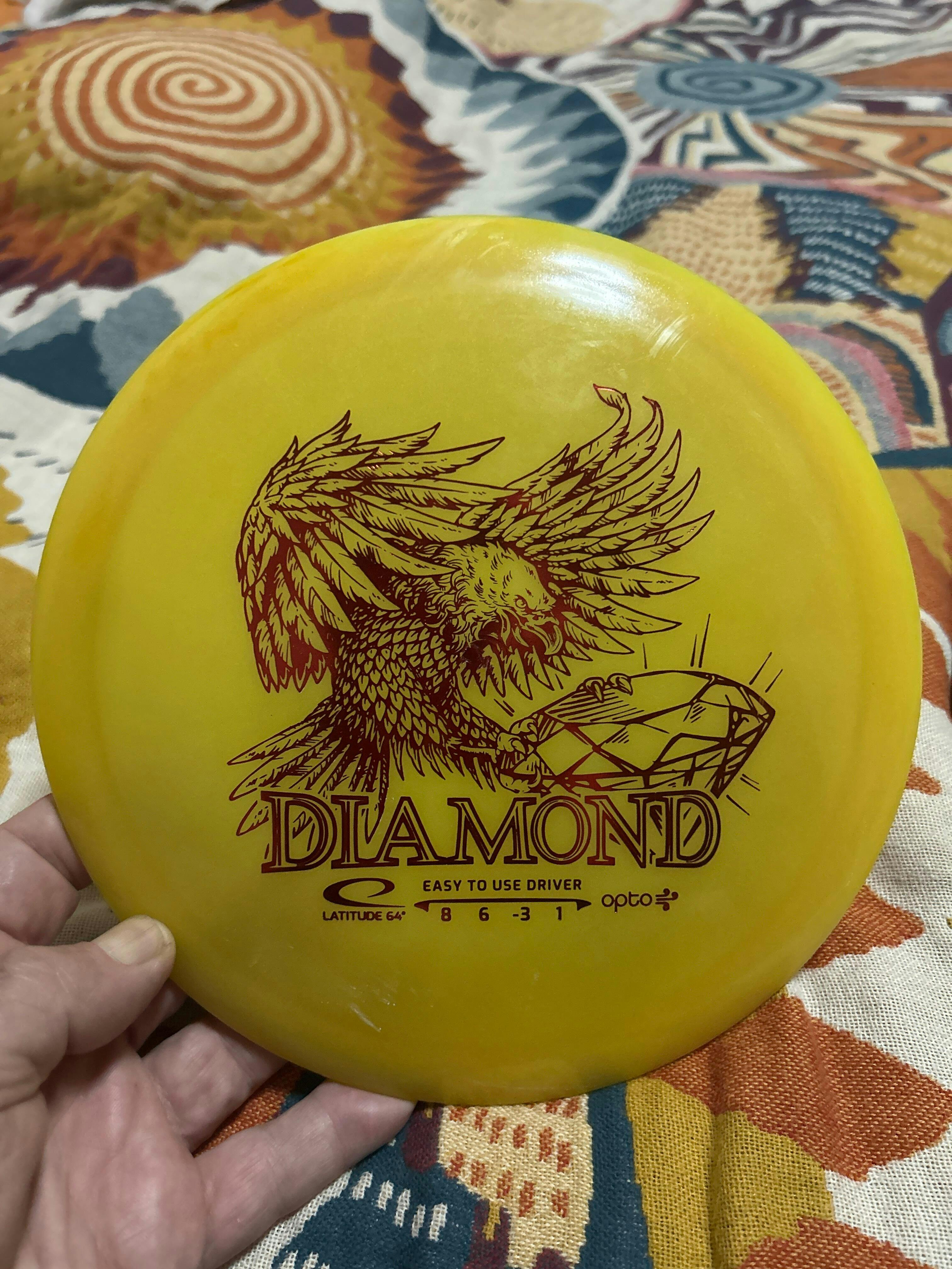 Diamond is the choice of disc for beginners, children, and players with moderate arm speed. It is mainly produced in weights under 160 grams, typically between 150g-160g, making it easy to throw and control. It has an understable flight path with good glide and slight fade.